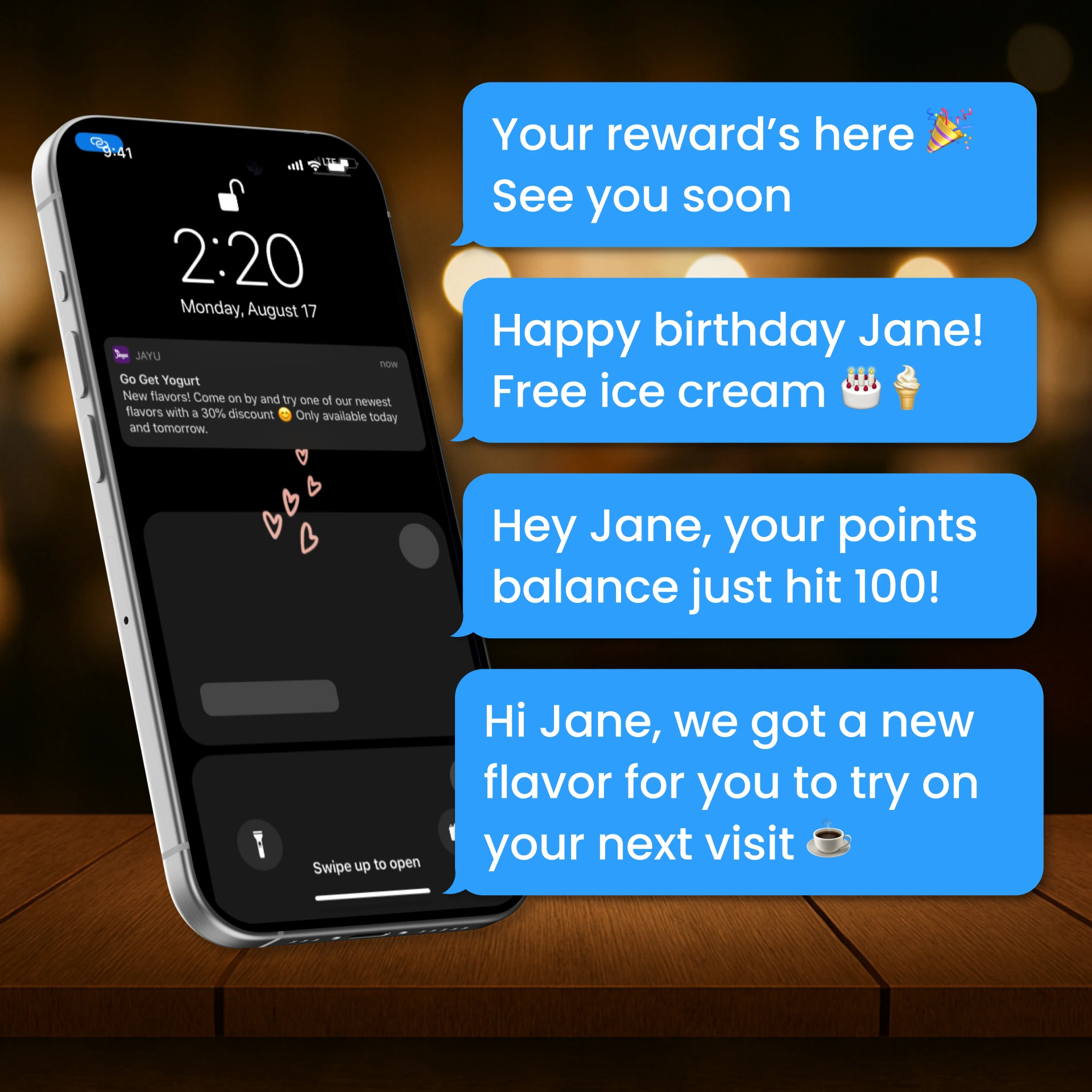 “Running our boba tea special through Jayu made it easy — the messages went out automatically, and customers revisits went up.“